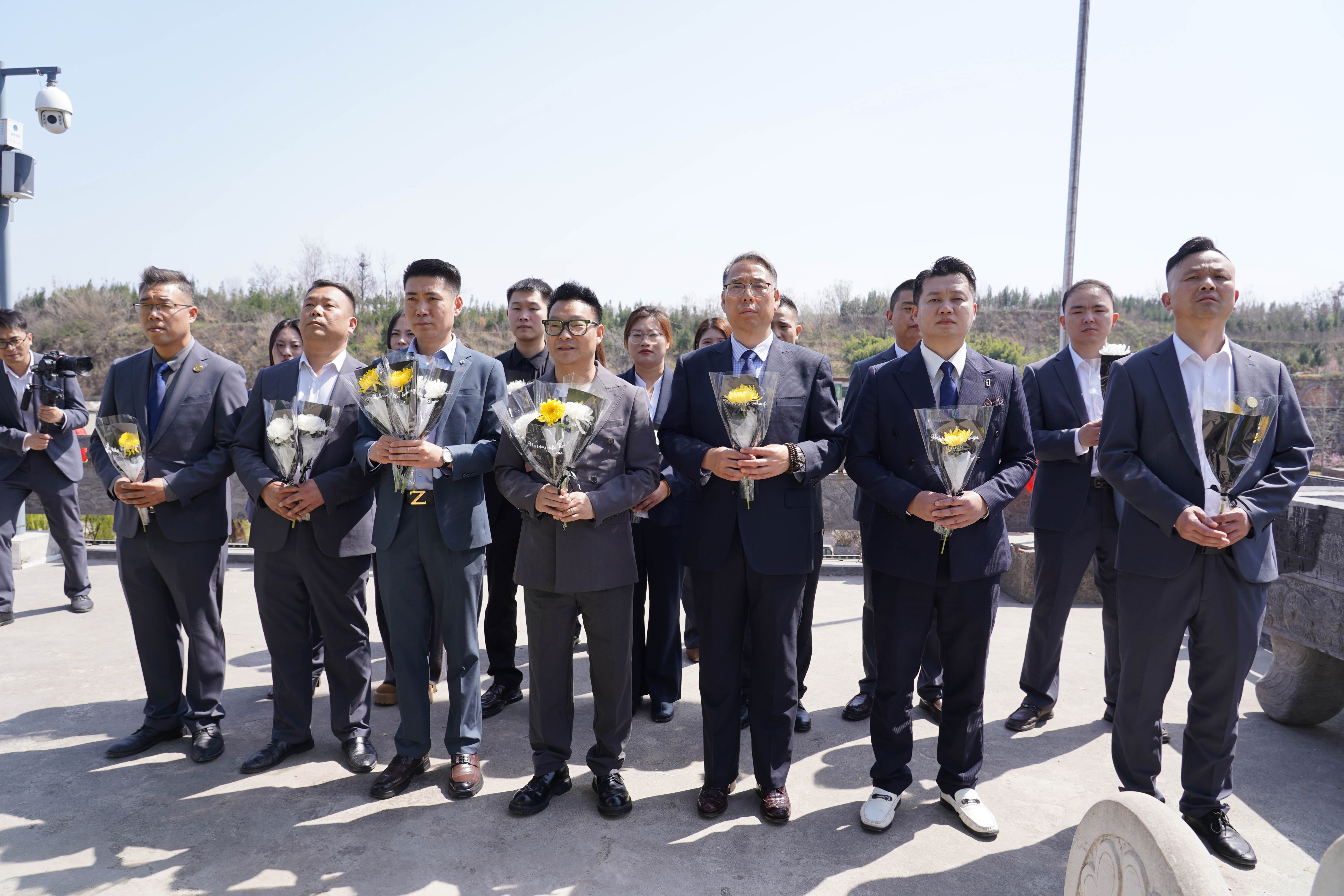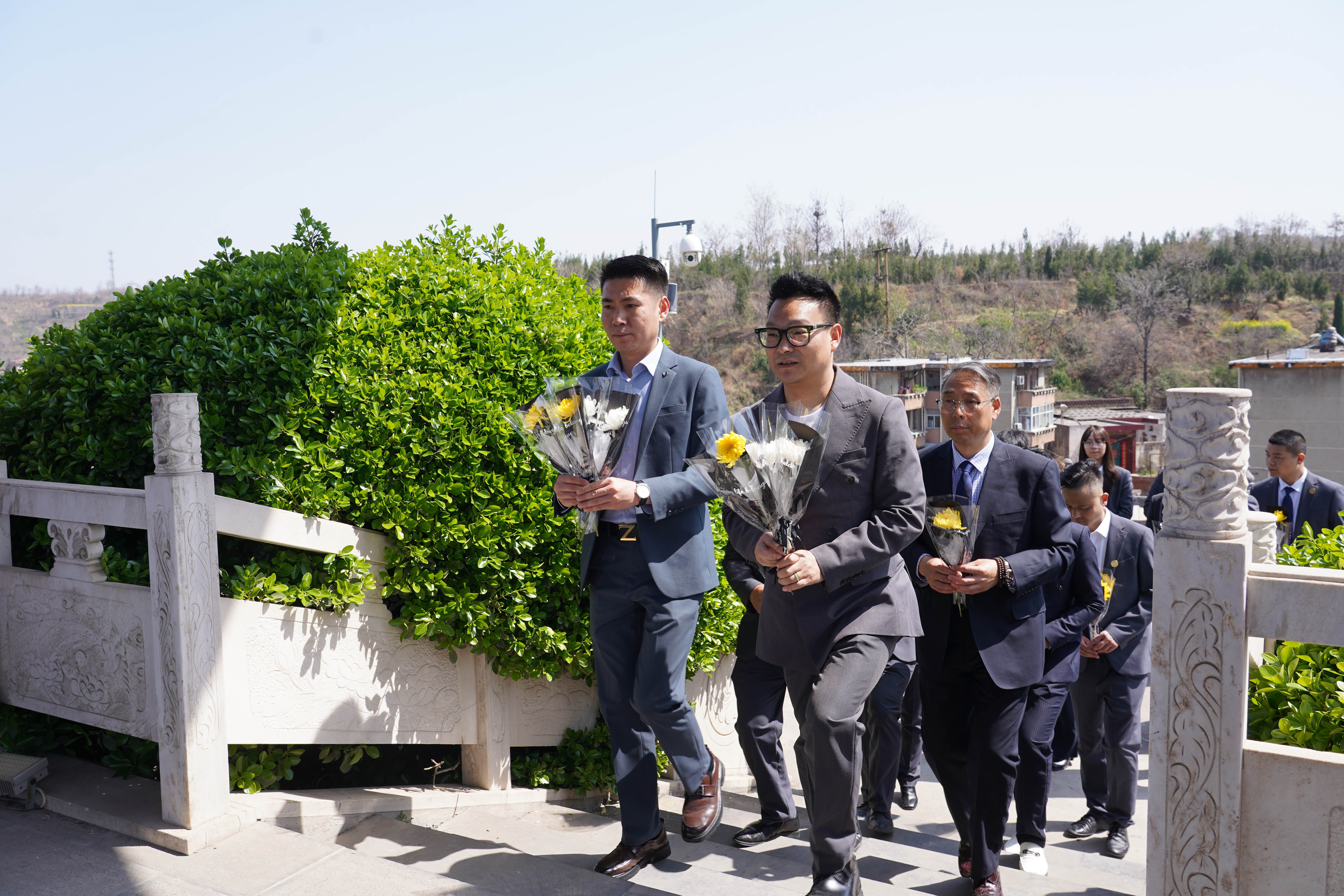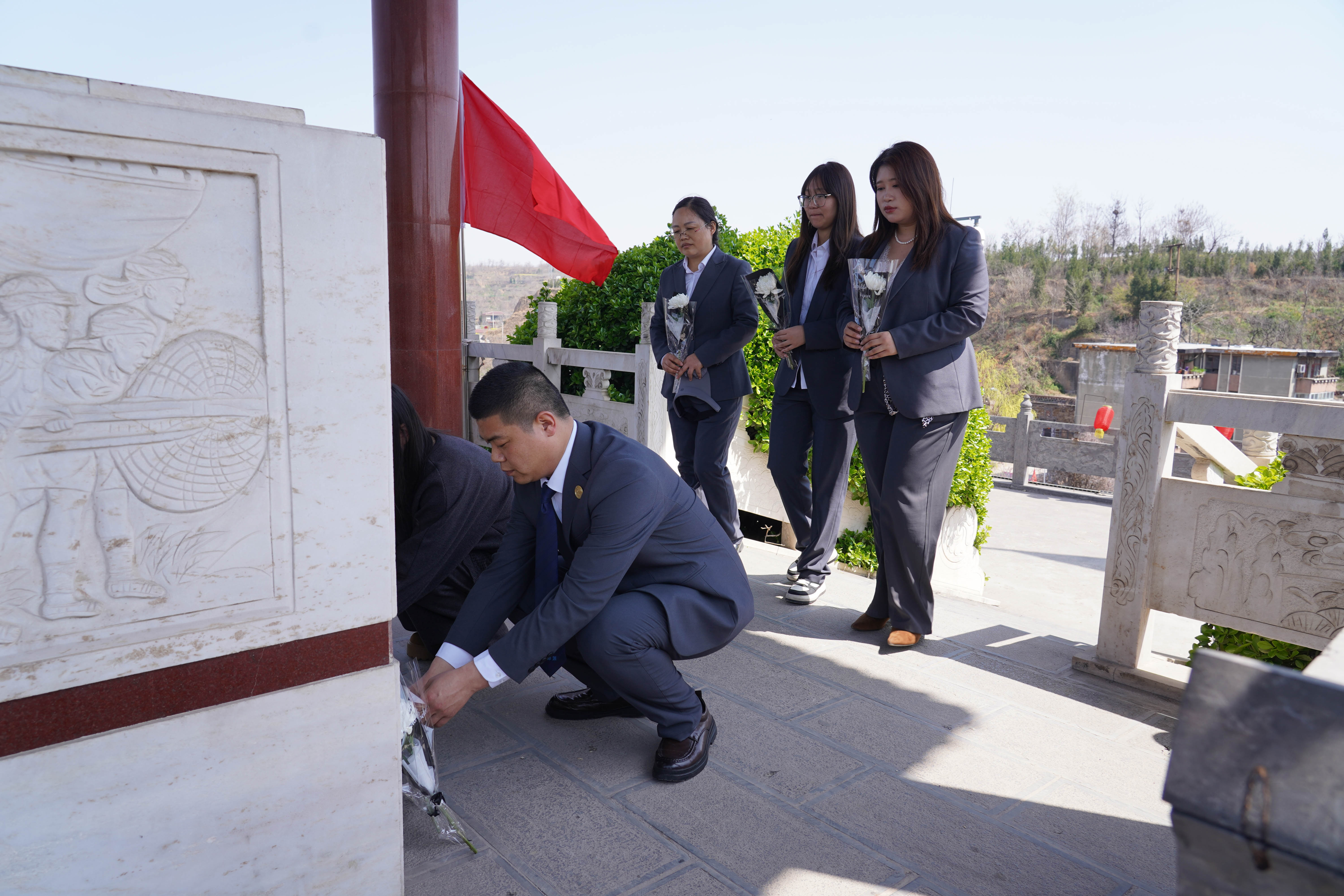 大家在伟人雕像前,深情鞠躬,敬献菊花。致敬在豫西大地上浴血奋战的先烈,用青春与生命换来了山河无恙、家国安宁。他们以热血赴国难,以信仰守山河,为我们铺就了通往幸福的道路。